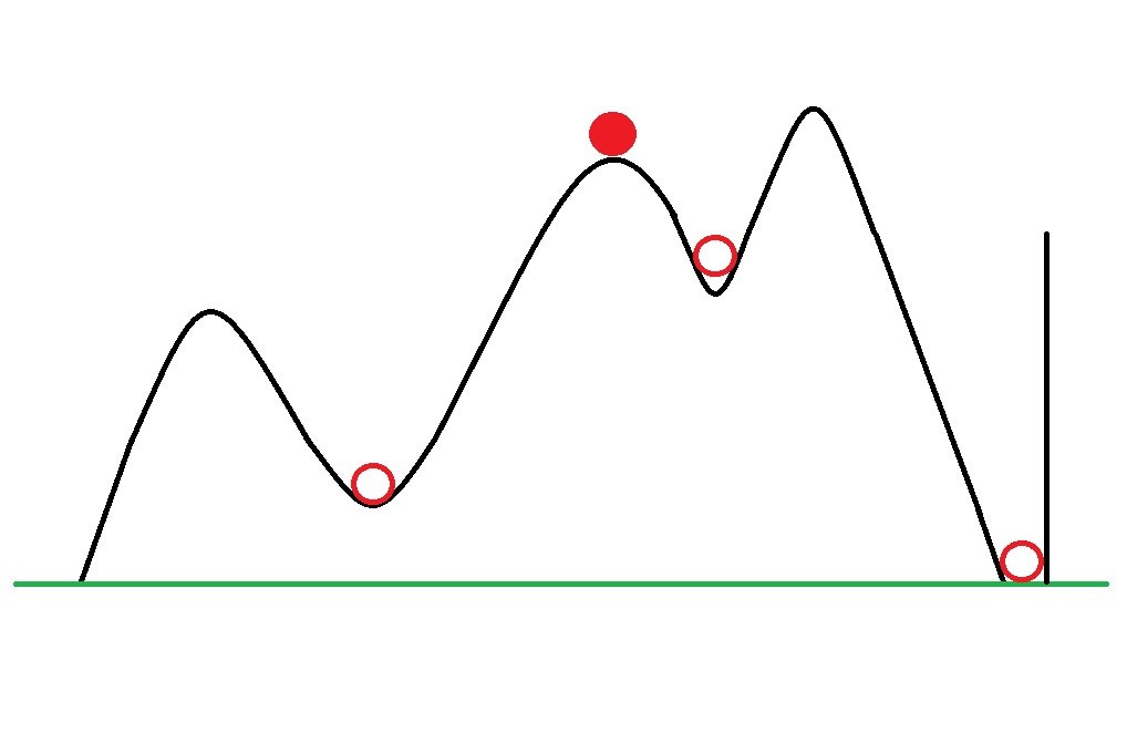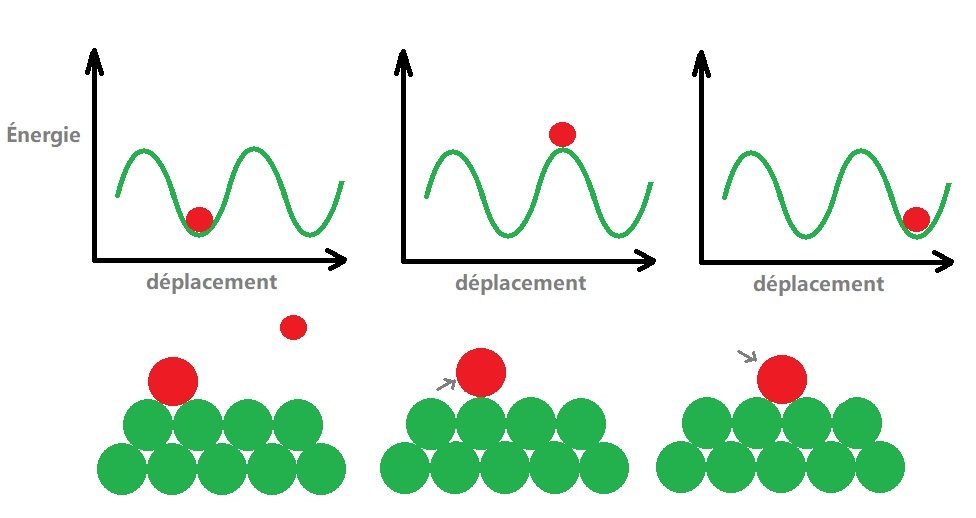 Les graphes ci-dessous illustrent bien le concept de l’état d’énergie minimum. L’idée est qu’il existe des minimums locaux, parfois, il n’est pas facile de trouver le minimum absolu d’un système et il faut passer par plusieurs états pour y arriver.
