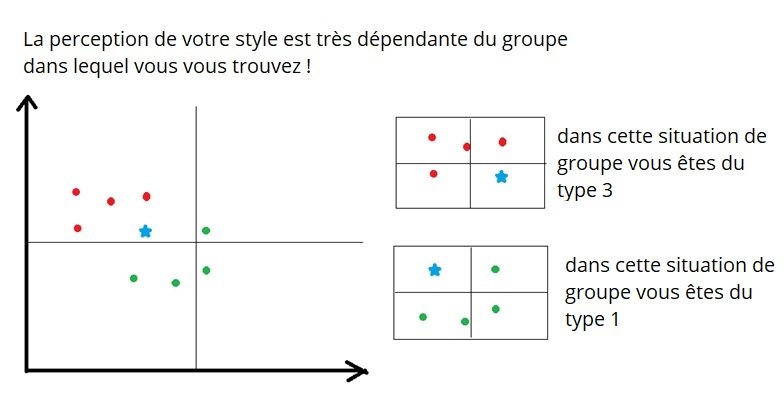 Cependant, il est important de prendre en compte le contexte. Selon la situation, vous ne vous retrouverez pas toujours au même endroit, dans le même quadrant. Il est donc essentiel de pouvoir identifier où vous vous situez en fonction de la situation afin de vous adapter. De plus, nous évoluons tous avec le temps, mais vous remarquerez rapidement qu’il existe des tendances.